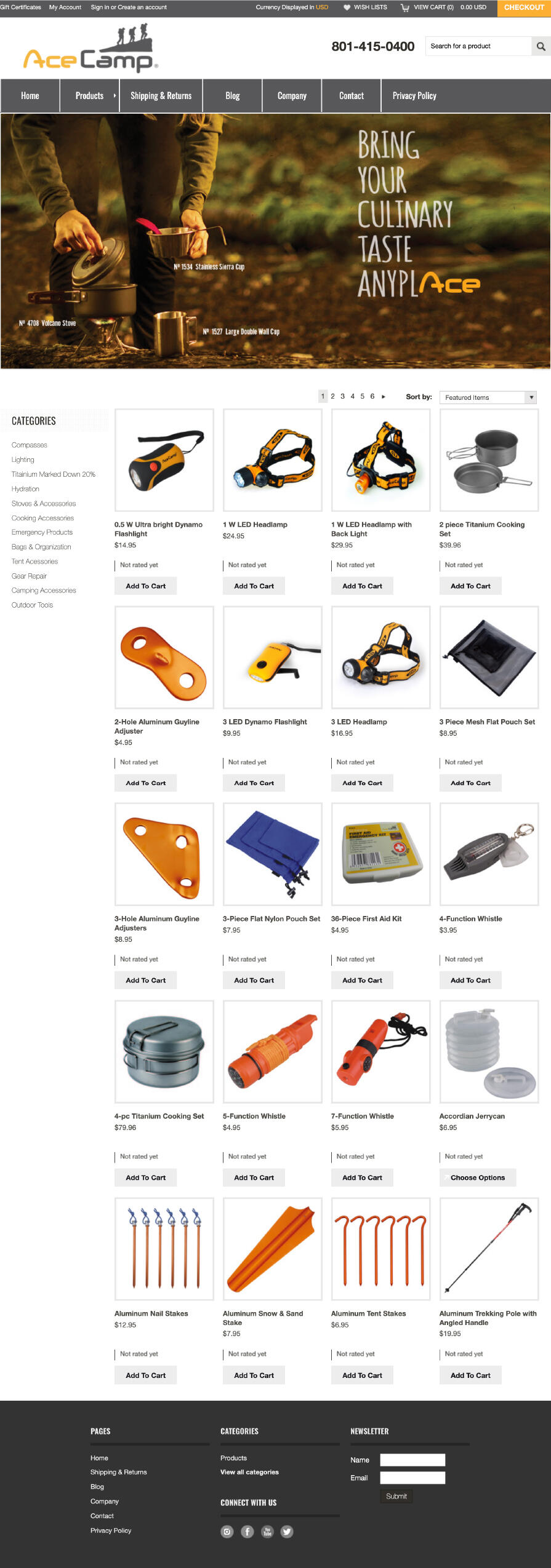 Services: Email Marketing · Website Redesign · Product Positioning · Display Ads · Packaging · Ecommerce OptimizationRole: Creative Direction / Brand Development / UX/UI/ Copywriting / Content Strategy / Photography / Videography / Experiential / Product Design / PackagingOverviewFounded in 2000, AceCamp designs reliable outdoor gear for camping, hiking, and emergency preparedness—built to perform whether you’re heading out for a weekend under the stars or stocking a kit for the unexpected. Practical, versatile, and adventure-ready, AceCamp supports explorers at every level.ChallengeAceCamp needed a scalable email marketing engine to support frequent product launches and boost e-commerce growth—introducing their outdoor-driven identity.