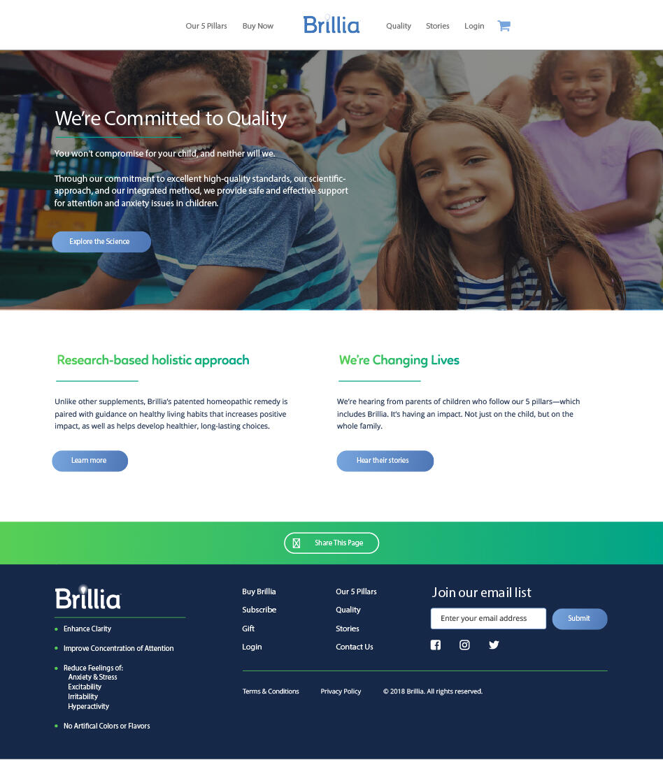 Impact SummaryThrough a data-driven rebrand and a complete digital overhaul, Brillia transformed its online presence into a high-performing growth platform. A redesigned website, optimized user journeys, and targeted content strategy improved engagement, increased conversion efficiency, and created measurable lift across key business metrics. The new system scales across all touch-points—supporting customer acquisition, and driving sustained performance. Overall the outcome was more than improved performance metrics—it strengthened the parent–child connection by providing clearer pathways to education, support, and natural solutions.